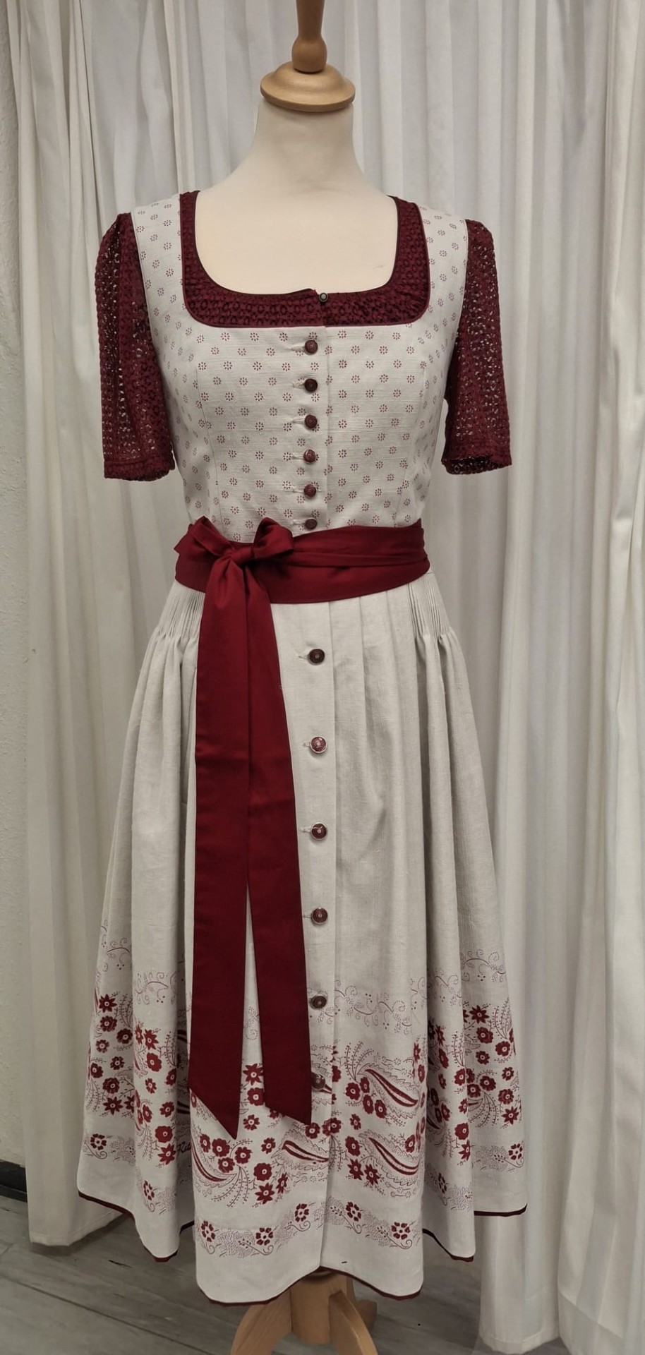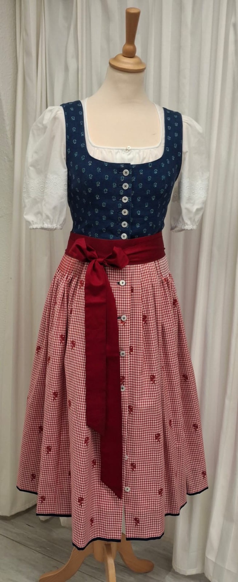 Besonderheit: Rock und Oberteil gleiches Muster mit rot gestreifter Bettzeugschürze